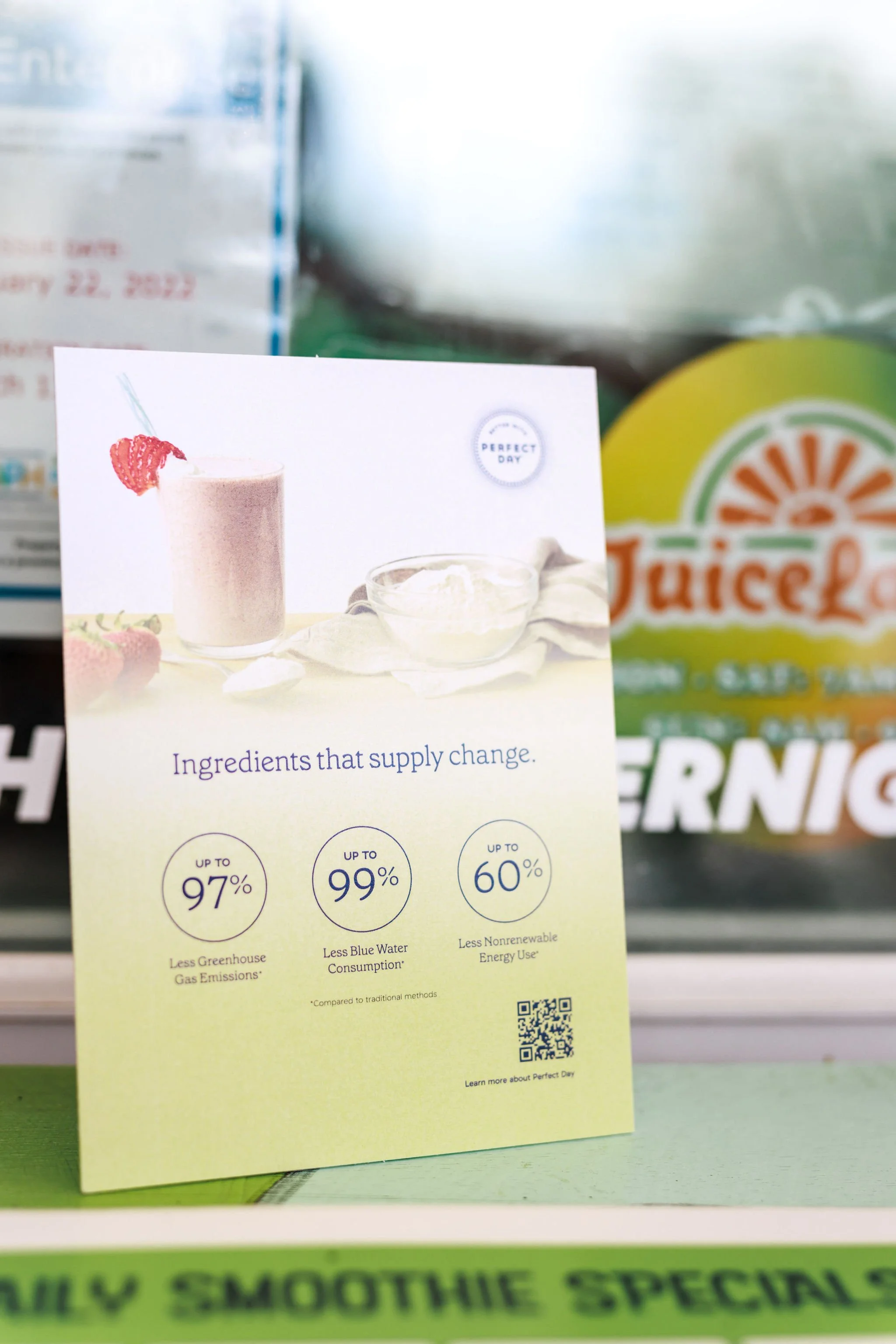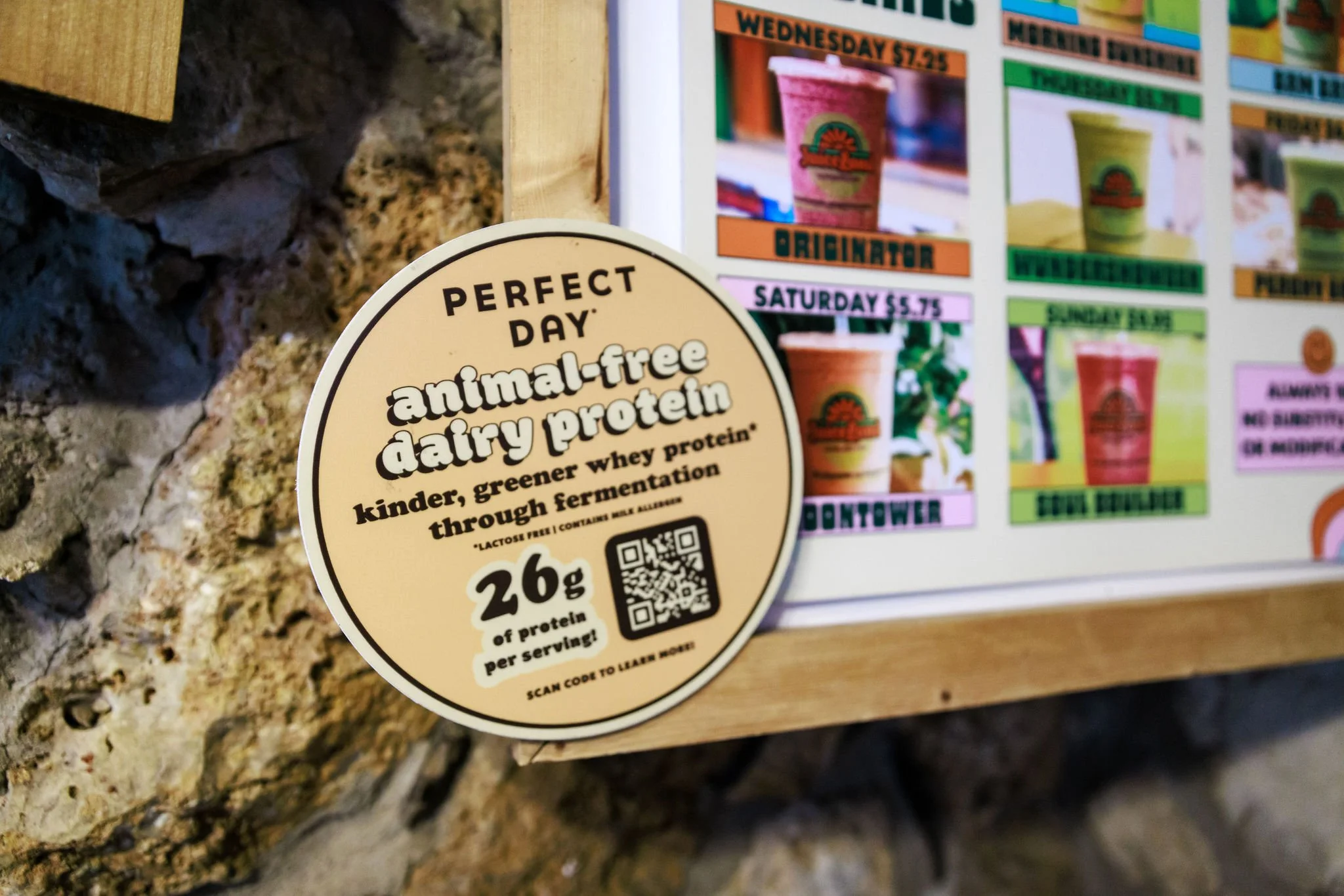 JuiceLand, a Texas-based smoothie and juice cafe, stopped carrying whey protein due to the environmental and ethical toll of the process of traditional dairy whey protein production. In 2022, whey was brought back to the menu, in the form of Perfect Day’s Whey Protein made via precision fermentation that’s nature-identical to traditional whey but with a production process that is far less taxing on the planet.